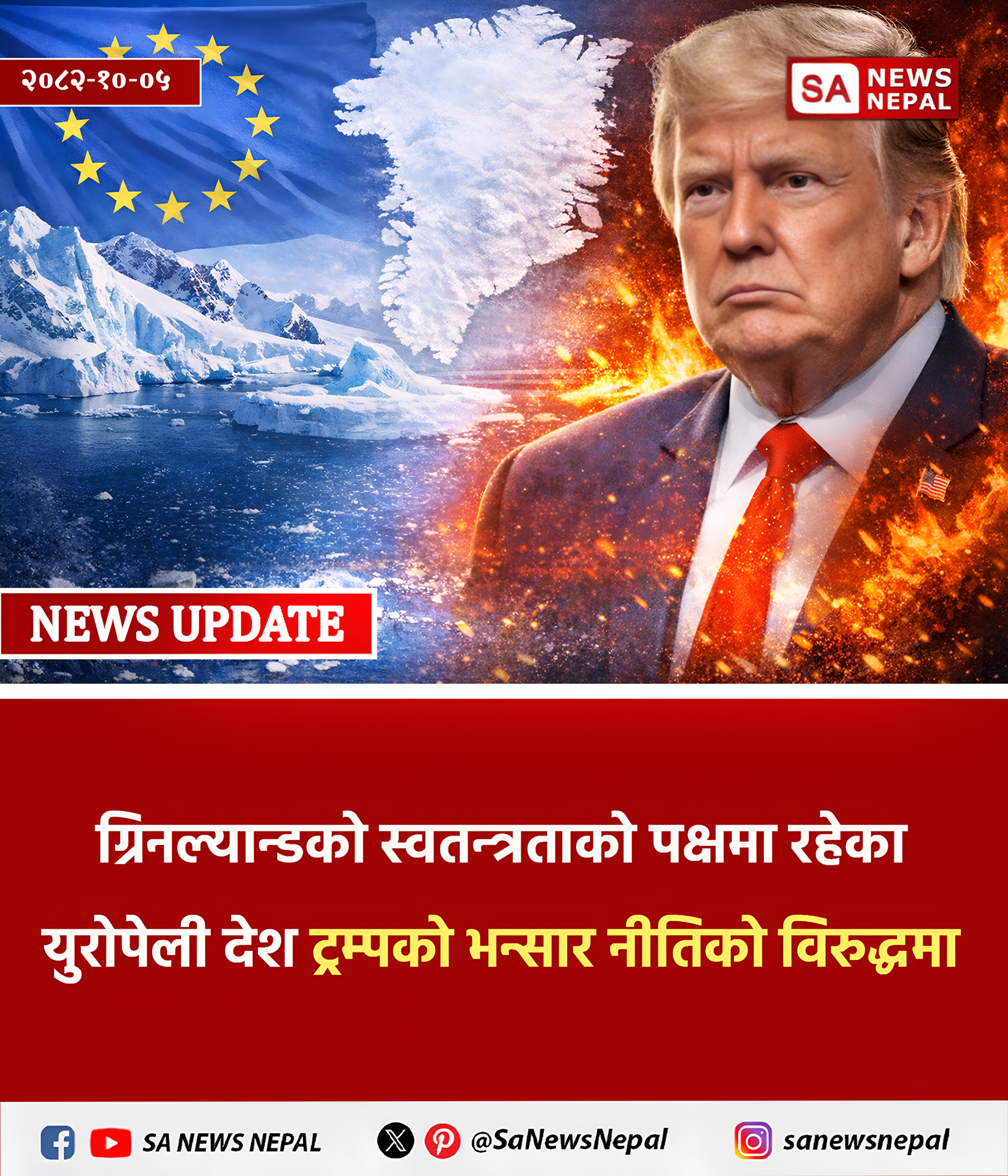 अमेरिकी राष्ट्रपति डोनाल्ड ट्रम्पले ग्रिनल्यान्डको पक्षमा उभिएका युरोपेली देशहरूबाट आयात हुने सामग्रीमा १ फेब्रुअरीदेखि १० प्रतिशत भन्सार शुल्क बढाउने निर्णय गरेसँगै युरोपभर तीव्र विरोध सुरु भएको छ । ट्रम्पले यो…