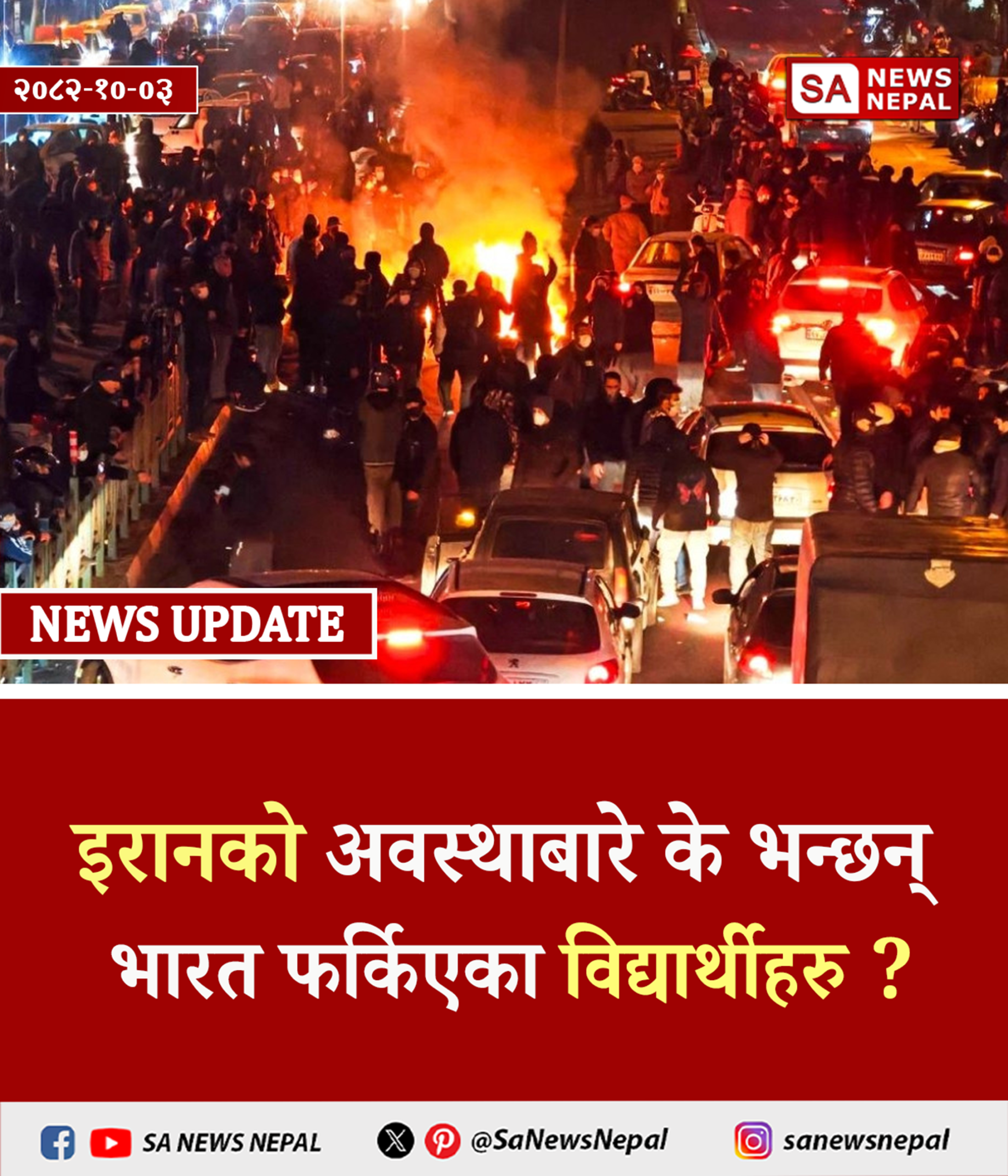 इरानको अवस्थाबारे के भन्छन् भारत फर्किएका विद्यार्थीहरु ? SA News Nepal इरानमा जारी प्रदर्शनका बीच केही भारतीय नागरिक शुक्रबार–शनिबार राति स्वदेश फर्किएका छन्। दिल्ली विमानस्थलमा सञ्चारकर्मीहरूसँग कुराकानी गर्दै उनीहरूले इरानको…