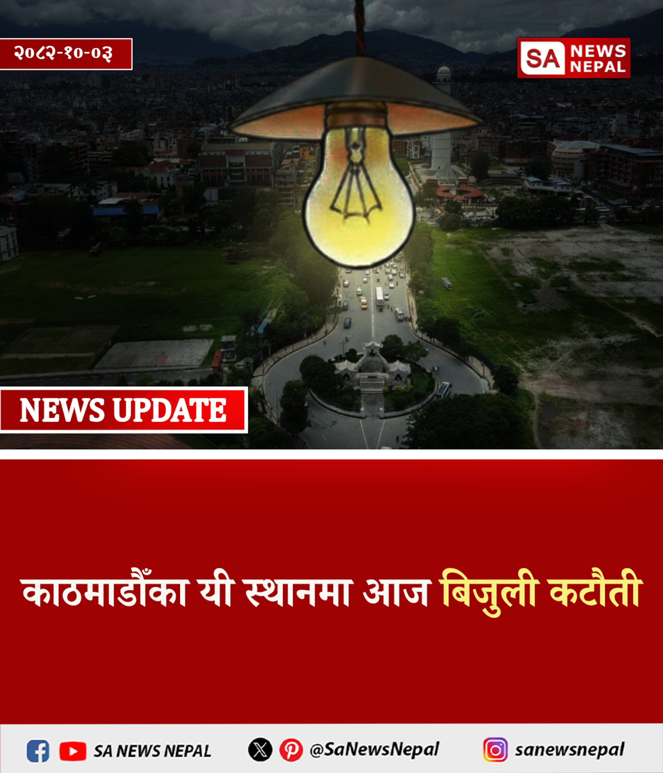 नेपाल विद्युत् प्राधिकरणले आज काठमाडौँका विभिन्न स्थानमा अस्थायी रूपमा बिजुली कटौती गर्ने जनाएको छ। महाराजगञ्ज वितरण केन्द्र मातहतका क्षेत्रमा वितरण प्रणाली भूमिगत गर्ने तथा प्राविधिक उपकरण जडानका कारण बिहान ११…
