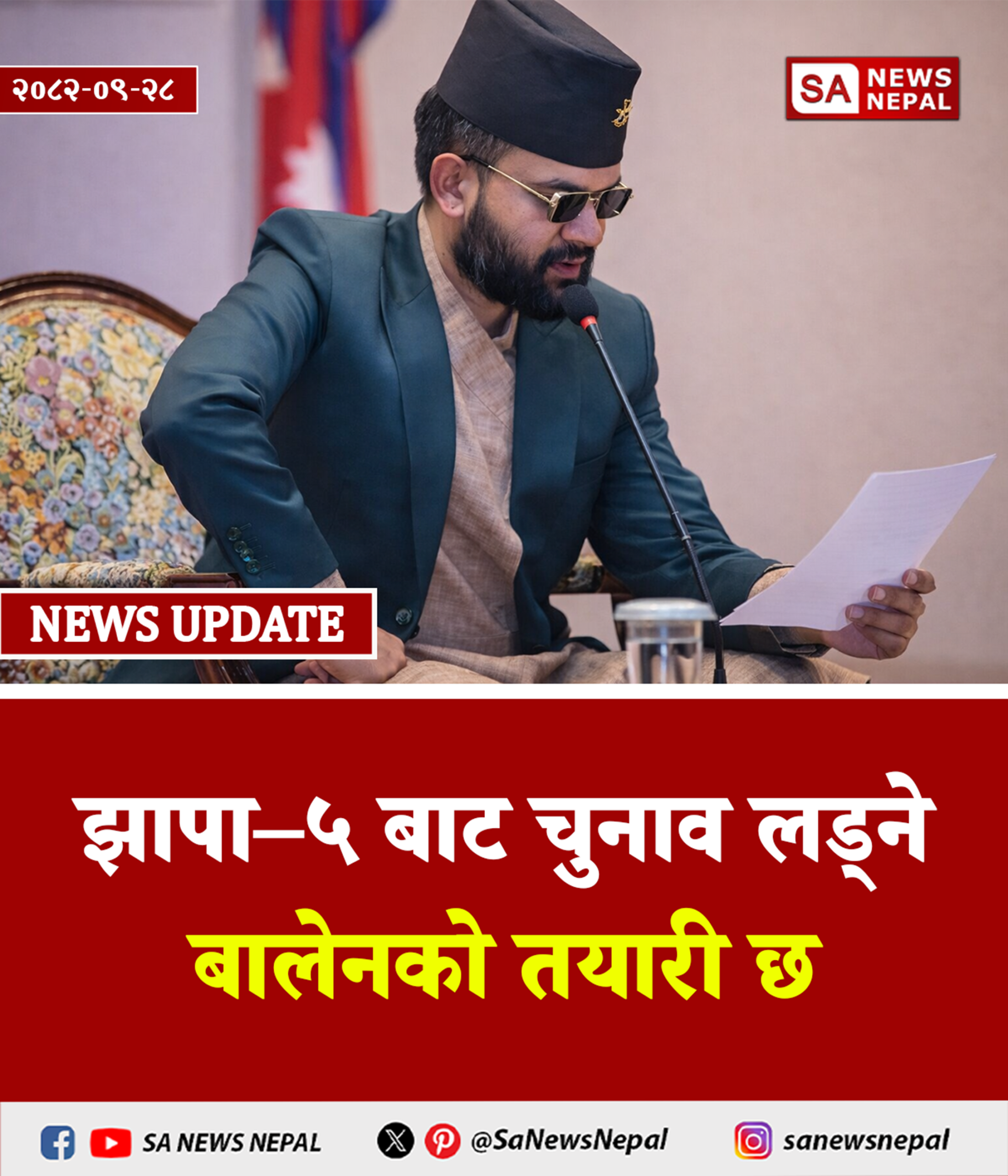 काठमाडौं महानगरपालिकाका पूर्वमेयर तथा राष्ट्रिय स्वतन्त्र पार्टी (रास्वपा) का वरिष्ठ नेता बालेन्द्र साह (बालेन) ले झापा–५ बाट उम्मेदवारी दर्ता गराएका…