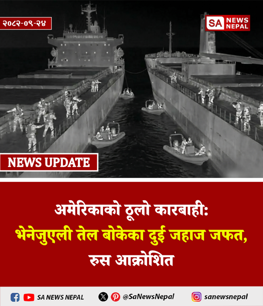 अमेरिकाले भेनेजुएलाको कच्चा तेल बोकेका दुई वटा जहाज जफत गरेको छ। उत्तर एट्लान्टिक र क्यारिबियन सागरमा गरिएको कारबाहीमा ती जहाजहरू अमेरिकी सेनाको नियन्त्रणमा लिइएका हुन्। रुसको झन्डा राखिएको एउटा जहाज जफत गरिएपछि रुसले कडा आपत्ति जनाएको छ। भेनेजुएली तेलमाथि लगाइएको प्रतिबन्ध विश्वभर लागू हुने अमेरिकाको दाबी छ।