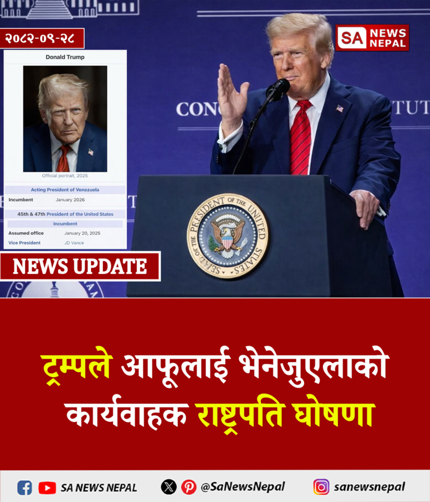 SA News Nepal > Blog > Politics > ट्रम्पले आफूलाई भेनेजुएलाको कार्यवाहक राष्ट्रपति घोषणा
