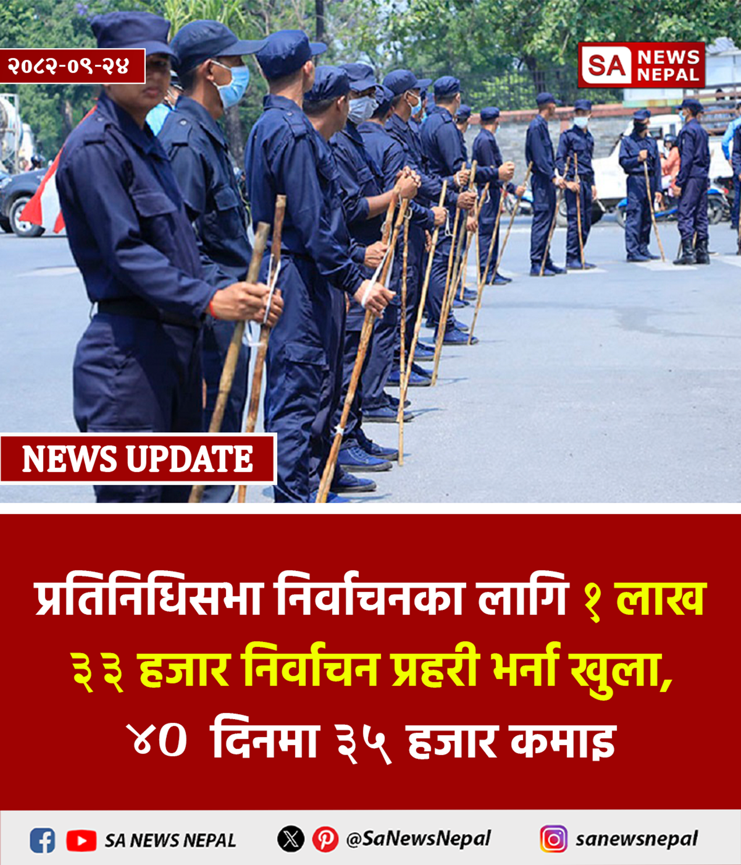 आगामी फागुन २१ गते हुन गइरहेको प्रतिनिधिसभा सदस्य निर्वाचनका लागि निर्वाचन प्रहरी भर्ना गर्न दरखास्त आह्वान गरिएको छ। प्रहरी प्रधान कार्यालयले कुल १ लाख ३३ हजार ९८० जना निर्वाचन प्रहरी…